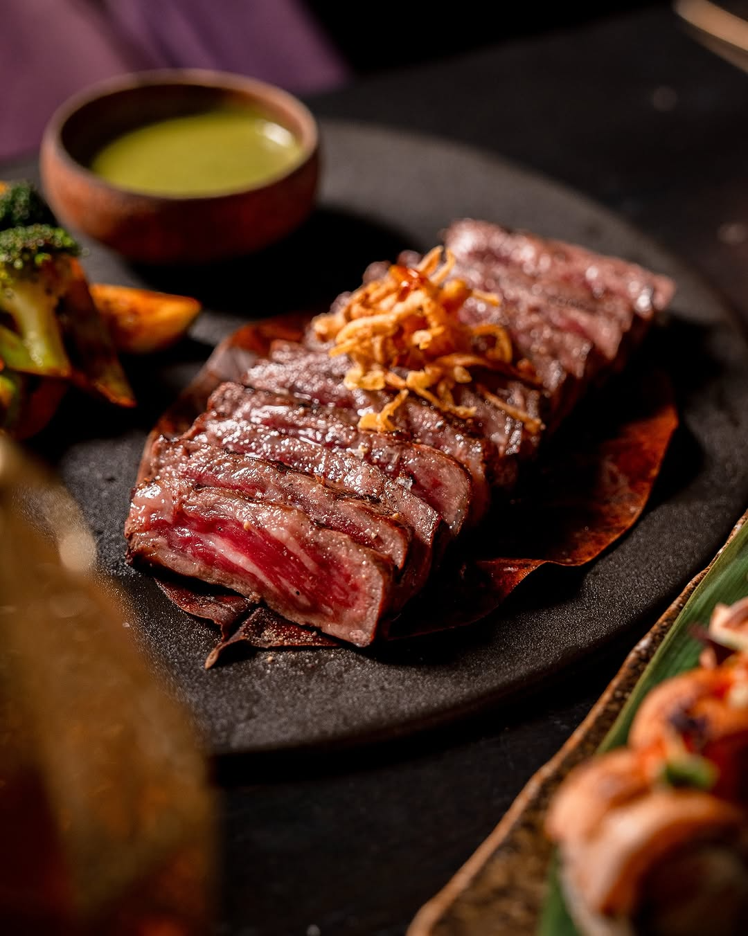 At Nazcaa, every plate carries the essence of Beyond Nikkei: freshness, fire, and finesse. Guests are welcomed into a menu that transcends tradition, starting with standouts like Salmon Uzukuri, Royal Guard Ceviche, and Bento Tuna Tartar, each cold creation layered with freshness and delicate Japanese technique. For comfort with character, the Arroz Chaufa, Koshibuki Kinoko stone bowl, and Japanese Kare bring warmth and complexity. Sushi lovers savour favourites such as Salmon Aburi, Sunrise Roll, and Ebi Tempura Roll, while robata enthusiasts choose from the rich Miso Salmon, Black Cod Teriyaki, or premium Wagyu Tomahawk. Whether you crave raw, grilled, crisp, or creamy, Nazcaa’s dishes deliver a dining experience that defines Dubai’s finest flavours.